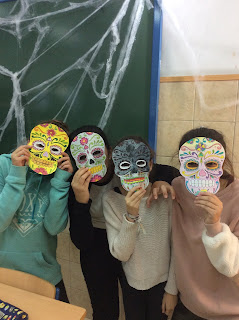 Nosotros hemos elegido uno de los elementos más importante de esta tradición, la Catrina, para decorar el hall del centro este curso. Hay auténticos artistas entre nuestro alumnado, echad un vistazo a nuestras "Catrinas".